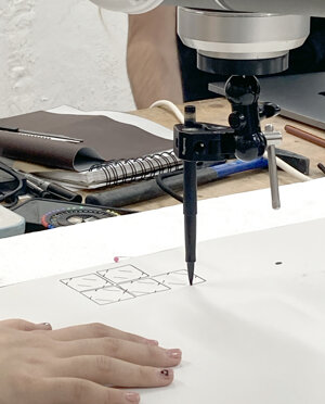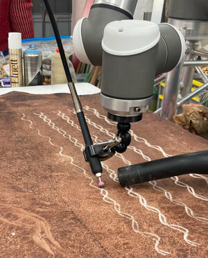 The digital use of the robotic arm will be experimental, following the projects created in 2D to groove, scratch, flatten, perforate ... the skins.