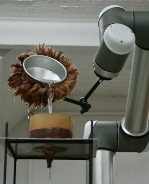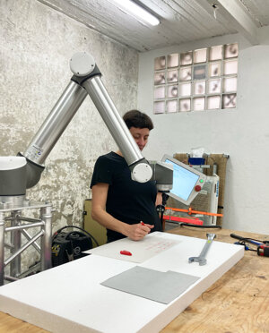 AATB is the collaborative practice of Andrea Anner and Thibault Brevet , both graduates of ECAL in Lausanne. After working on interactive objects and installations, they encountered an industrial robotic arm five years ago. This crystallized an ongoing research on human-machine interactions and led them to investigate the potential of robotics and industrial automation to exist outside the realm of factories.